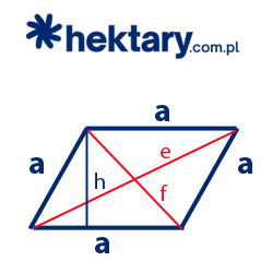- Z przekątnych – gdy znamy długości przekątnych e i f: